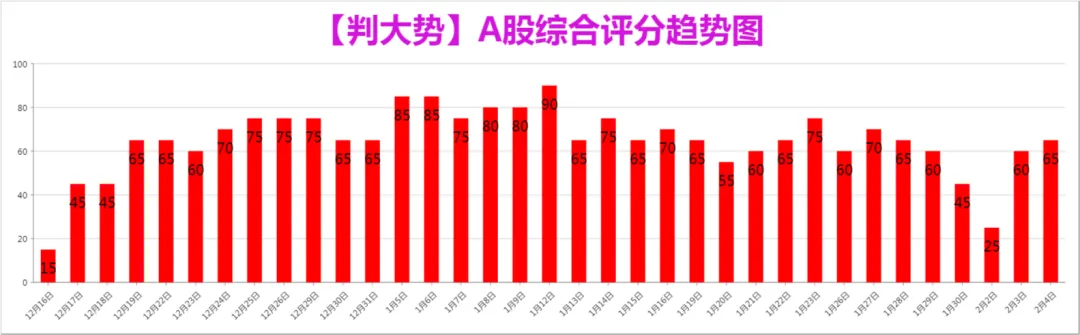 下午尾盘的急拉,把A股的总和评分从上午45分,一下子拉到了65分,比昨天的分数还要高;