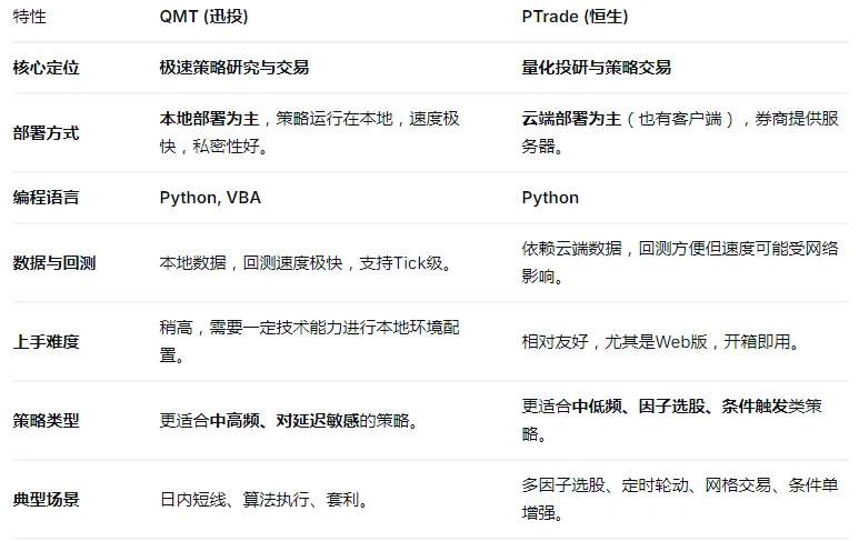 三、QMT vs. PTrade 简要对比