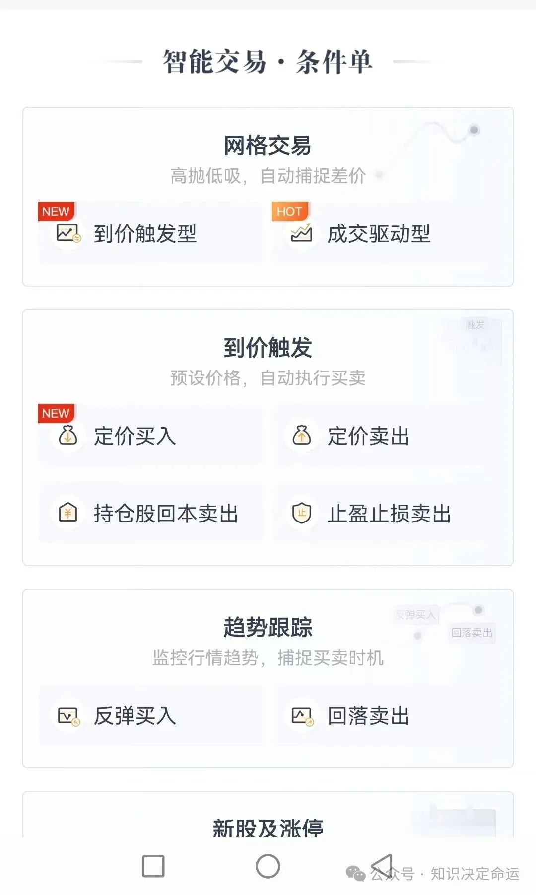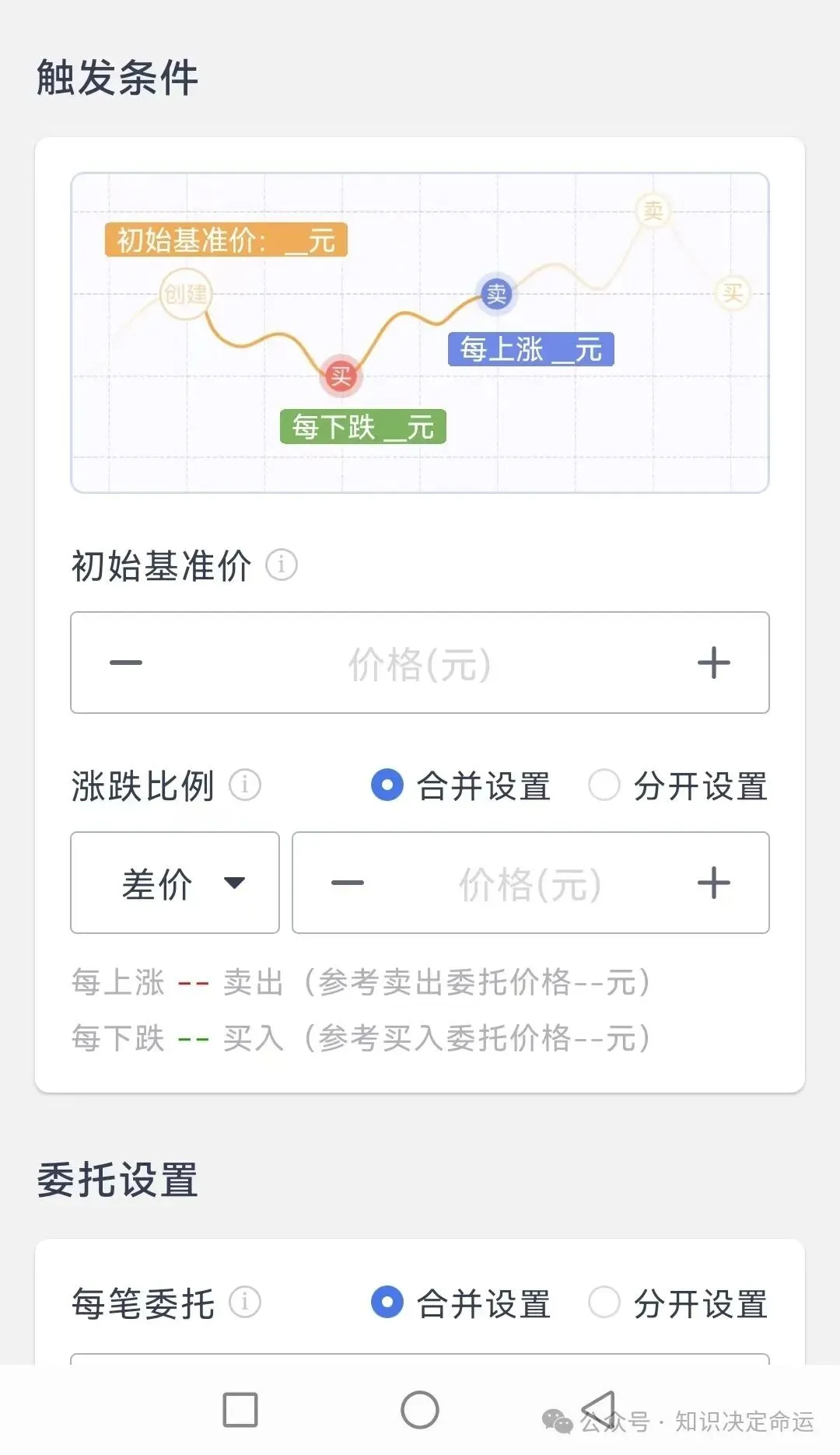 支持成交驱动型网格的券商有哪些?推荐如下支持成交驱动型网格的券商有银河、信达等,成交驱动型网格交易作为一种智能交易策略,想要操作网格开通一个佣金低的股票账户是很有必要的,能帮你节省不少的交易成本,开户前网上找券商的客户经理来沟通,部分券商的股票佣金可以低至万0.85的水平,单笔交易的手续费是0.01元起步,比如买1万元的股票,券商手续费是0.85元。即到价触发型网络条件单。设置一个基准价,开盘后就实时监控价格,当价格到达以后,进行委托,如果股价快速拉升或者下探,就有可能无法成交。即先设置一个基准价,开盘直接挂一买一卖两笔委托,价格触达后,直接成交,然后以这笔成交后的价格下一笔的基准价,进行下一轮委托。