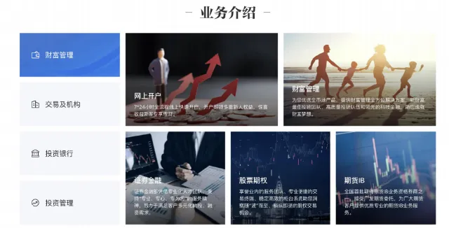 ▶️全业务牌照覆盖:拥有投资银行、财富管理、交易及机构、投资管理四大业务板块,具备证券经纪、投资咨询、融资融券、证券承销与保荐、资产管理、期货IB等全业务牌照,可为客户提供一站式综合金融服务。