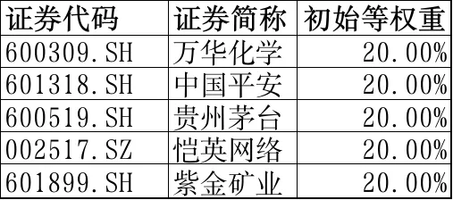 为简化展示,仅呈现推荐次数排名前三且推荐次数至少为5次的股票,从上表可以看出,万华化学、中际旭创、中国平安、贵州茅台、恺英网络、紫金矿业本月的推荐次数分别为7次、7次、6次、6次、5次、5次(中际旭创符合1.(5)的约定,予以剔除)。因此,2026年2月入选“券商金股撸羊毛组合”的股票及配置比例如下所示: