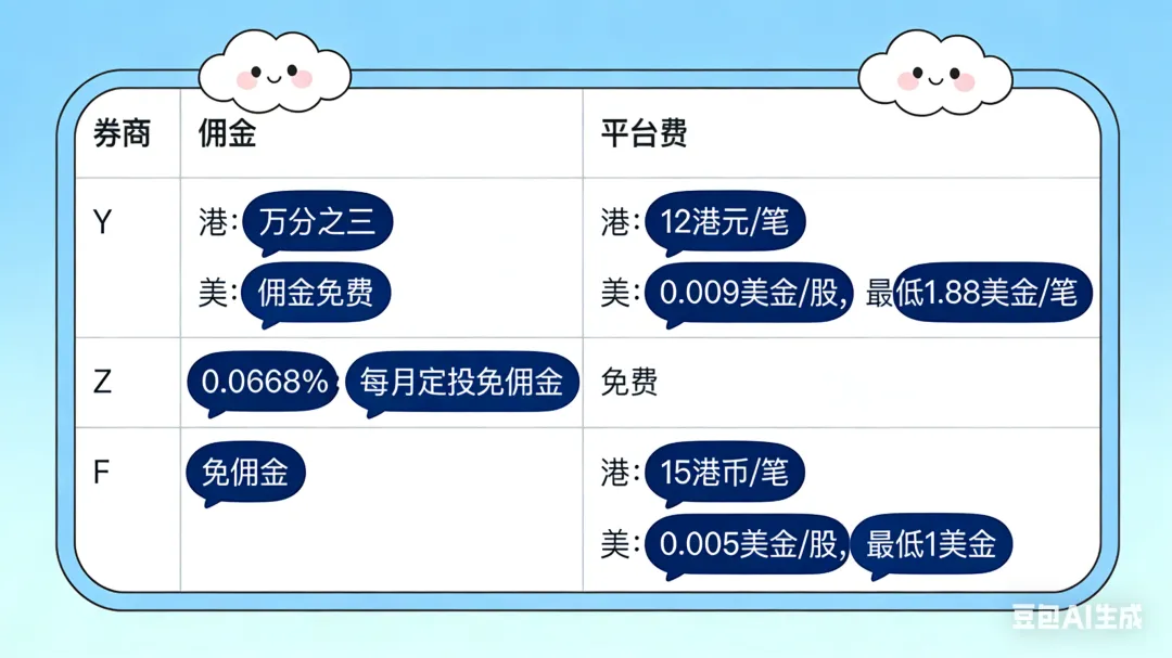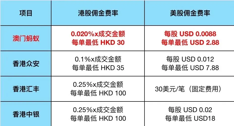 各家佣金费率对比如下: