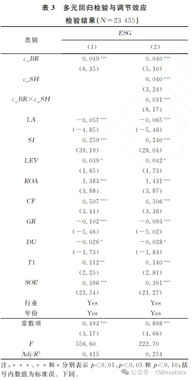被解释变量:企业ESG表现 。本研究选取样本区间齐全、国内认 可度较高的华证ESG指数对企业 ESG表现进 行评估。除了上市公司的相关公开材料外,华证ESG评价体系还参考了政府及相关监督部 门网站数据和新闻媒体数据,是结合了国际主 流 ESG评价体系特征和我国市场特点的 ESG评级体系。华证ESG指标体系根据行业特点, 基于指标得分,共将企业ESG表现评为C-AAA九 档 等 级。为 方 便 实 证 分 析,将C-AAA九档评级赋值1-9,由此得到企业 ESG 表现的变量。