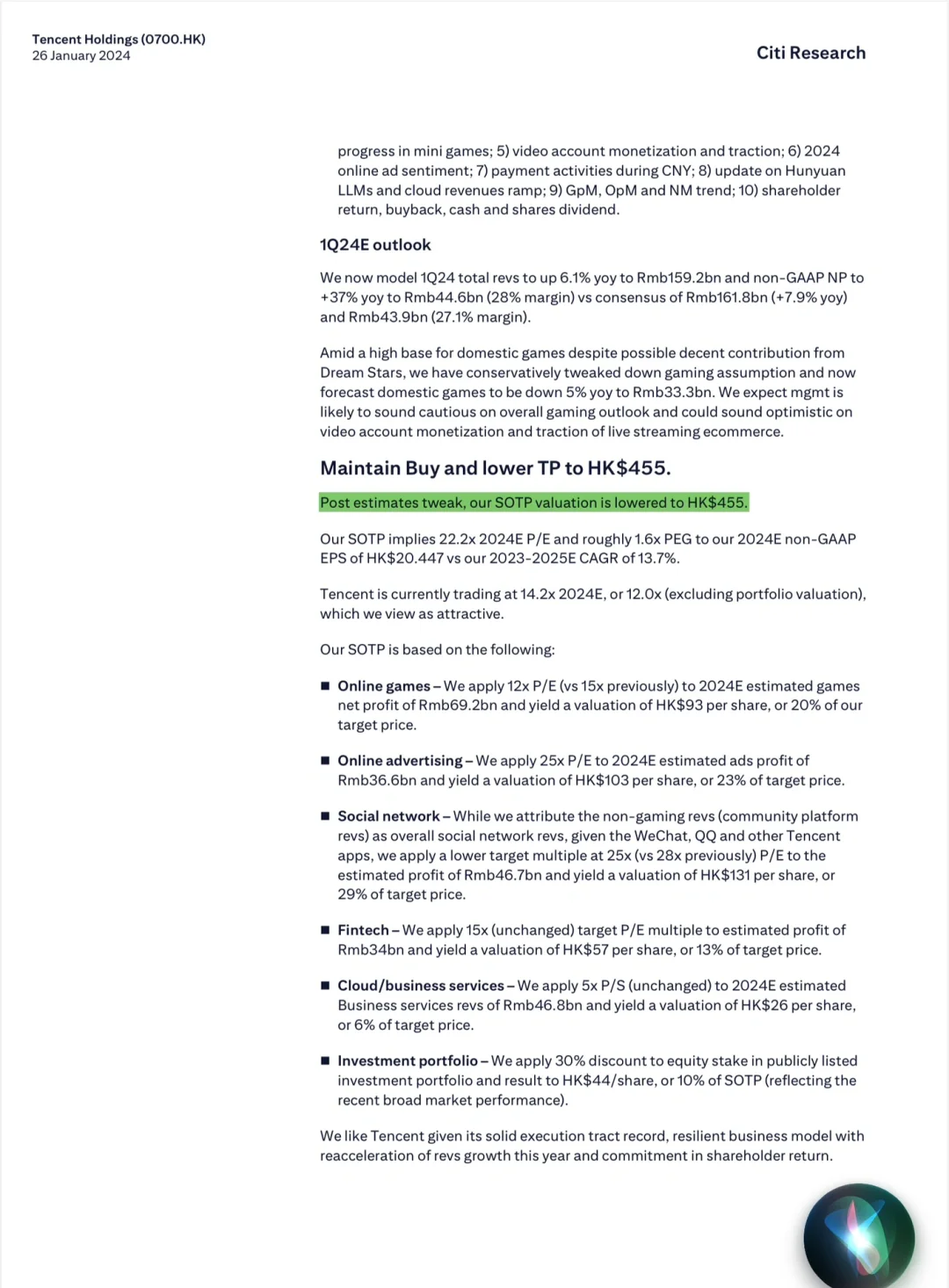 🔍 花旗有哪些核心观点?