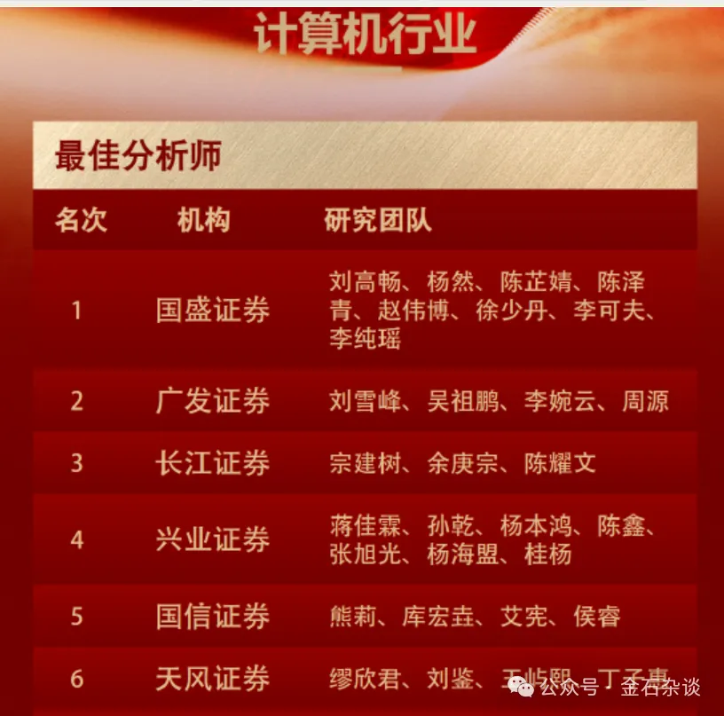 券商年终大瓜!休假成原罪?券商研究所所长“整顿”职场....2月10日消息,券商圈年终大瓜,深陷离职潮的国盛研究所成为了今日谈资。看情况是,所长责问某机械分析师“很忙?”,机械首席秒回复:“我安排好”。然后,该所长表示“工作日想放假可以辞职”,直言“今年奖金取消”,“以后再有此事,一路劝退”,并@人力,人力这也是秒回,所长的权力还是可以的。随后,所长大概说了下自己生气的原因,天天嚷着加薪,工作日找不到。关键在这行情下还加薪了,加完了就这工作态度。不过,据社区平台消息,目前该事件已经平息,据说该分析师是因为去调研推掉了销售的路演,而被所长公开怼。坊间消息,目前俩人一个已休假,一个明天回家过年。去年11月下旬,国盛研究所被传大地震。截图显示,ZZX去买方;ZJY即将出任国联民生研究所副所长;LGC即将加入东方财富研究所。随后靴子全部落地,风波中的郑震湘,张金洋以及刘高畅三人相继离职。1月4日,中国证券业协会信息显示,郑震湘已无任职信息,应该是已经离职。值得注意的是,郑震湘2024年12月才从方正证券辞职,重返国盛证券研究所,并担任研究所联席所长、电子首席分析师一职,至今入职刚满一年。郑震湘已8次入选新财富最佳分析师,在业内享有“科技产业大咖”之称。知情人士透露,其下一站是买方,但也有消息人士表示其下一站是去做产业。相较于12月底,金石杂谈查询国盛电子官微团队介绍中,郑震湘联席所长、电子首席在第一行分外醒目。如今,郑震湘的名字已被抹去,不过“湘论科技”的名字还未更改。在团队介绍中,佘凌星不再是联席首席,而成了电子首席,联席首席为为以前的电子分析师钟琳。其中,佘凌星和钟琳都曾联席四年荣获新财富前三名。此外,该团队除了刘嘉元,其他人均未离职。此外,张金洋从事医药投资研究10年,有3年产业经验,2019年1月加入国盛,现任国盛证券研究所所长助理、医药首席分析师,曾就职于东兴证券、银河证券、民生证券及西安杨森制药,他同样多次上榜新财富。据悉,张金洋下一站是国联民生研究所副所长。此前,金石杂谈查询发现,张金洋的个人公众号在停更1个月后的12月14日已经更新为国联民生证券医药团队。截至目前,国盛医药联席首席胡偌碧已于25年12月17日加入国联民生;医药分析师杨芳已于12月5日加入国联民生;医药分析师王彦迪12月30日加入国联民生。刘高畅,出生于1990年,曾是最年轻的计算机行业首席,离职前担任国盛证券计算机行业首席分析师,兼任所长助理及机器人大组组长。刘高畅在2021年新财富最佳分析师评选中获得计算机行业第一名,并连续三年蝉联榜首。刘高畅团队离职让外界有些措手不及,就在11月28日刚刚拿到新浪财经金麒麟计算机最佳分析师第一名。去年11月的市场传闻,刘高畅将加盟东方财富研究所。前几天刘高畅自曝,加入国金,担任研究所副所长、计算机首席、科技负责人。截至目前,赵伟博、陈芷婧、李可夫均已加入国金研究所,担任分析师;而徐少丹尚未更新协会信息。至于公司研究所业务,收入持续缩水,21年中期高达2.2亿,24年上半年缩水26.67%至1.32亿,如今研究所收入已不足1亿,即便相较2023年也几乎腰斩。