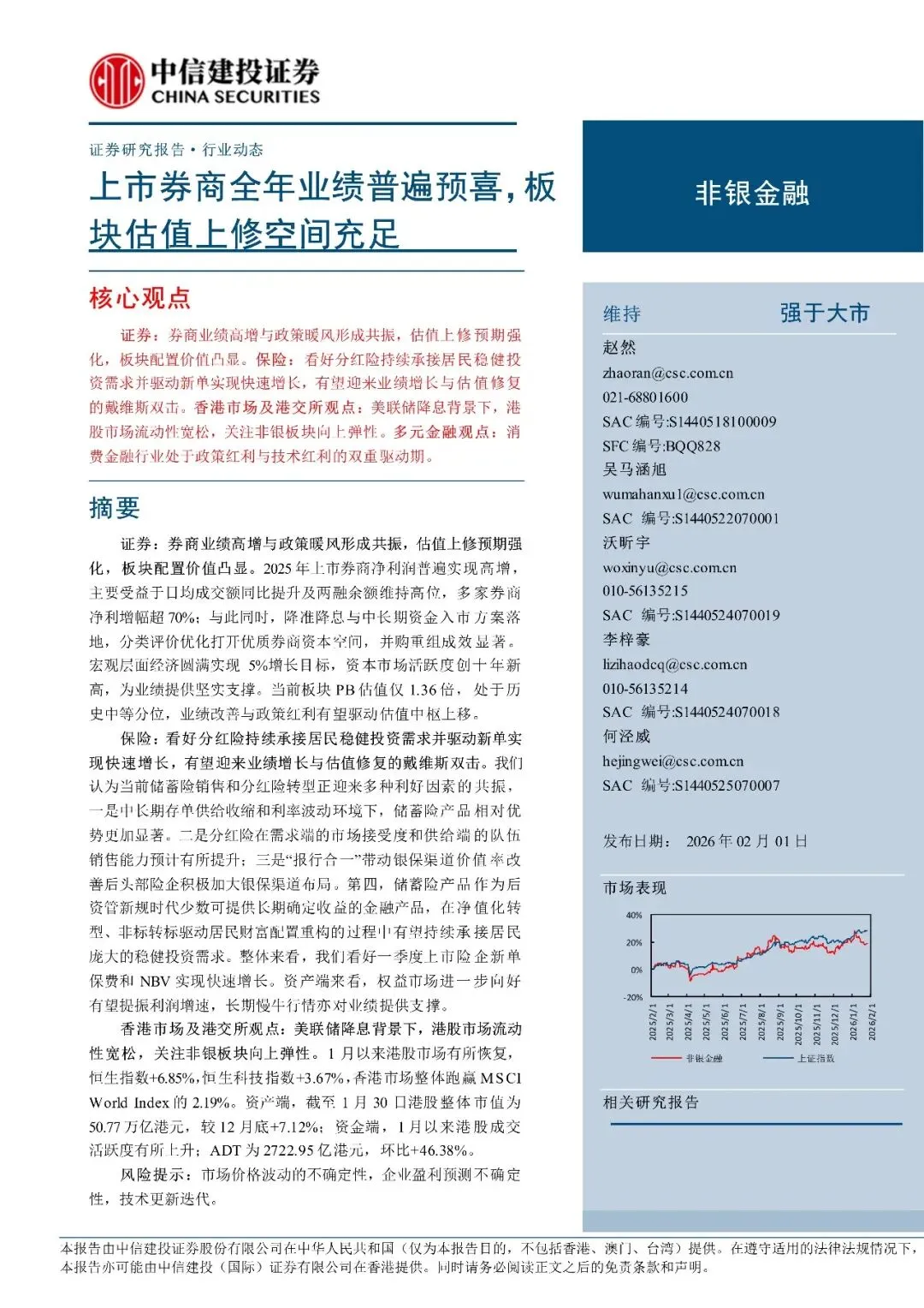 回复暗号:非银金融行业:上市券商全年业绩普遍预喜,板块估值上修空间充足-260201-中信建投-31页