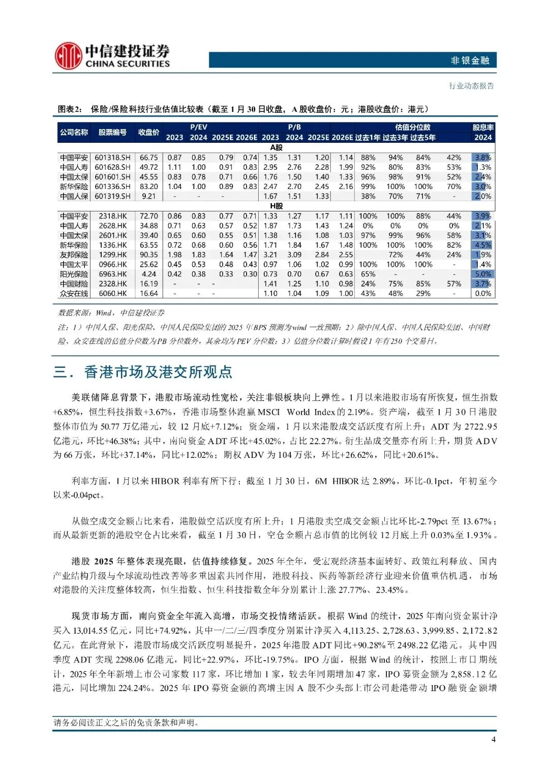 证券:券商业绩高增与政策暖风形成共振,估值上修预期强化,板块配置价值凸显。保险:看好分红险持续承接居民稳健投资需求并驱动新单实现快速增长,有望迎来业绩增长与估值修复的戴维斯双击。香港市场及港交所观点:美联储降息背景下,港股市场流动性宽松,关注非银板块向上弹性。多元金融观点:消费金融行业处于政策红利与技术红利的双重驱动期