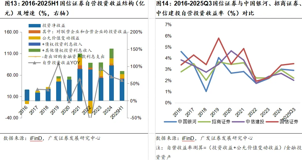 进一步拆分杠杆结构,国信的信用类杠杆持续回落,不仅显著低于可比券商,且自身收缩趋势明确,反映融出资金等信用业务端的风险偏好持续偏稳健;投资类杠杆呈回升趋势,杠杆差距持续收窄,与可比券商的水平逐步贴近,体现其在投资端正温和加杠杆,以此把握市场机会,是盈利韧性的重要支撑。预计国信的低杠杆格局不会发生根本性改变,但结构或边际优化,信用类杠杆大概率维持低位以延续风险管控,投资类杠杆有望随资本市场活跃度提升温和抬升,带动整体杠杆率小幅改善,最终在风险可控的前提下,实现收益能力的稳步提升。