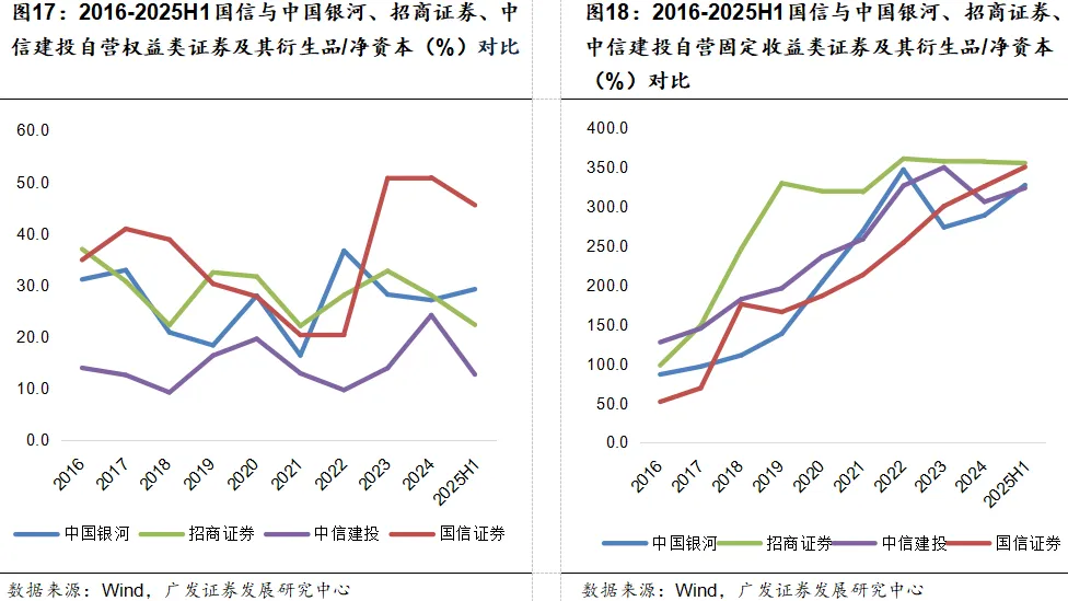 国信证券与盈利、资本端排名长期在相近区间(行业第5-10名区间)的可比券商,盈利波动与资本补充相近,行业梯队定位相近。相对可比券商,国信2025Q3盈利排名升至第6名,在同区间中提升更突出,资本端排名也稳居行业前列,整体同处核心梯队且盈利边际改善更显著。