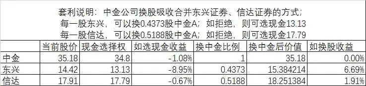 套利股券商三傻,我买了两个,东兴和信达,今天看到东兴已有5%的收益,信达只有不到1%的收益。在集思录上看到的收益和我计算的不同,集思录上的结果是: