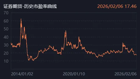 证券期货估值情况:目前证券期货板块市盈率约17倍,分位数12.6%。