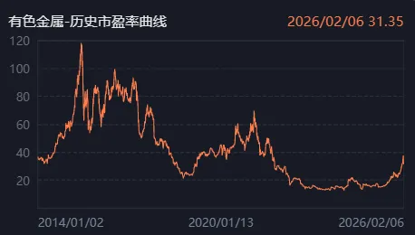 有色金属估值情况:目前有色金属板块市盈率约31倍,分位数37.1%。