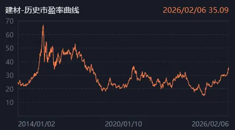 建材估值情况:目前建材板块市盈率约35倍,分位数75.1%。