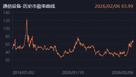 通信设备估值情况:目前通信设备板块市盈率约66倍,分位数91.8%。