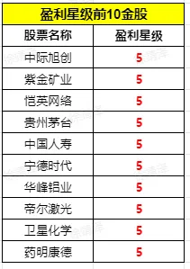 8)山东黄金:公司主营黄金开采、选冶;黄金矿山专用设备、建筑装饰材料(不含国家法律法规限制产品)的生产、销售。成长星级较高。