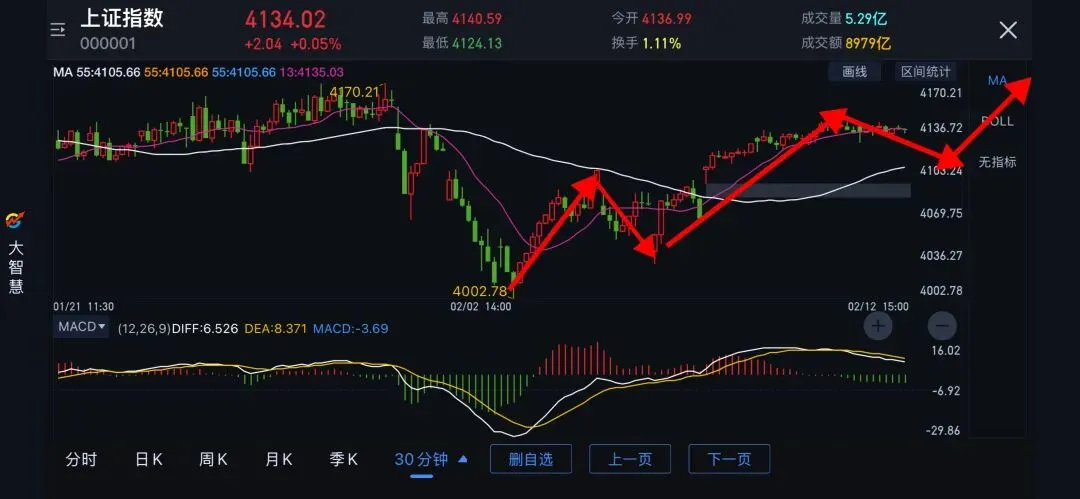 20260212上证指数分析+券商指数跟踪上证指数逐渐清晰起来,但节前能否走出来,有点悬念。日线图还是区间震荡,有待突破,30分钟图目前小3浪中。小3浪是否走完,有待观察。可以先上再下走4浪,也可直接下走4浪。弄不好明天也没结论。券商指数60分钟图也逐渐明朗了,B浪调整中。C浪能否起来,看明天吧。起不来,那只有节后了。祝大家交易成功🏆