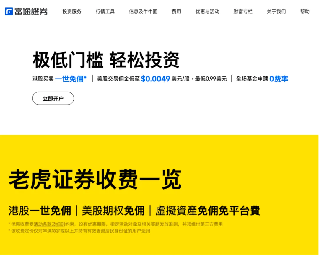 富途证券推出港股成功开户即享一世免佣的政策,美股碎股及虚拟资产交易也是零用金,同时搭配高价值入金奖励。老虎证券针对港股正股、牛熊证实现0佣金0平台费,美股期权也免除佣金。微牛证券则凭借港美股市双市场0佣金0平台费的“真0收费”模式占据优势;华盛证券则针对香港居民推出港股无限免佣。
