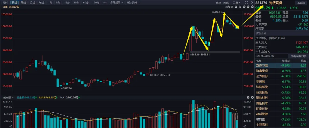 其他领跌的比如光伏、通信设备,还是震荡上行,进二退一的节奏没变。毕竟现在市场成交量就这么点,大资金都休息了,市场并没有主线来持续发力: