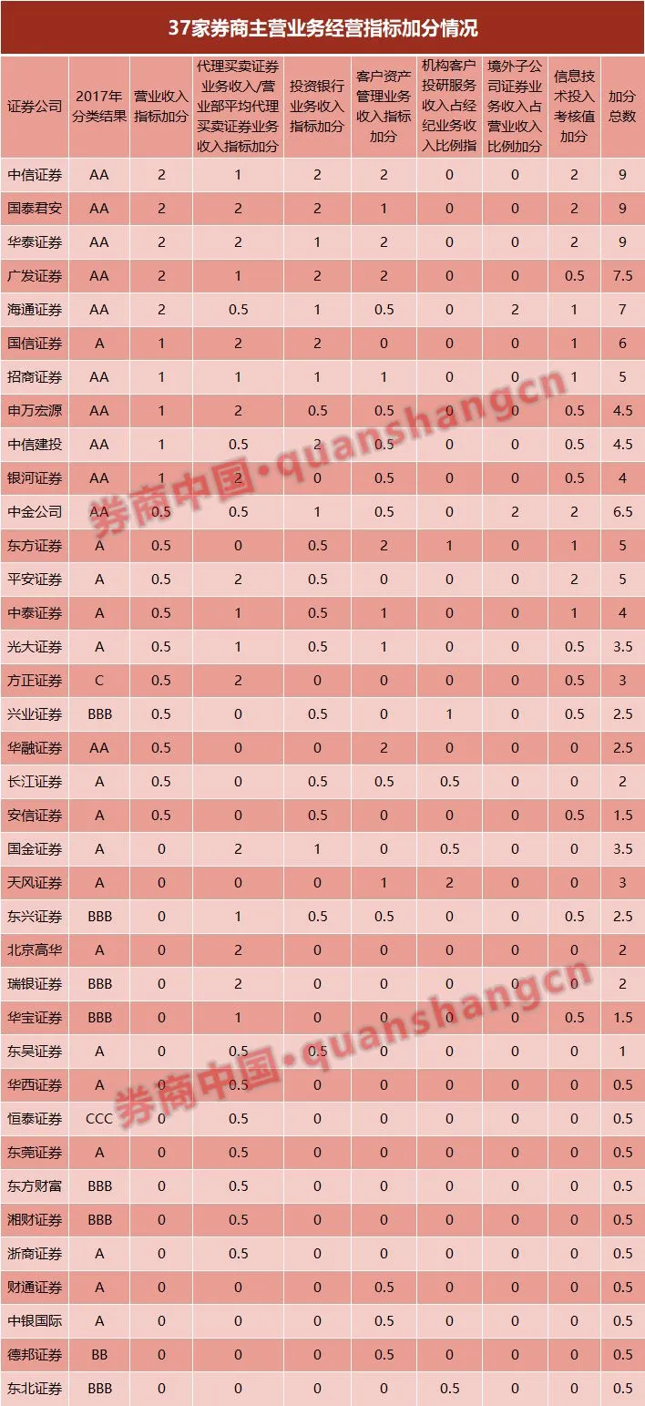 注:本文所统计的加分数据为记者根据计分方法和公开数据计算,仅为行业提供参考,与证券公司最终实际加分数据可能存在出入,请一切以官方披露结果为准。