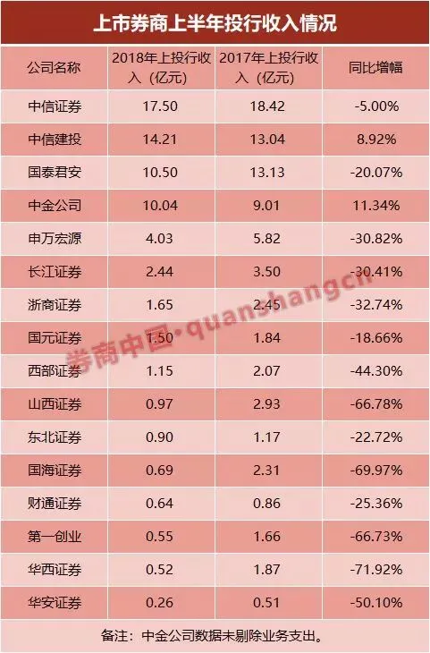 就目前公布的券商半年报情况来看,仅有中金公司和中信建投证券投行收入实现正增长。
