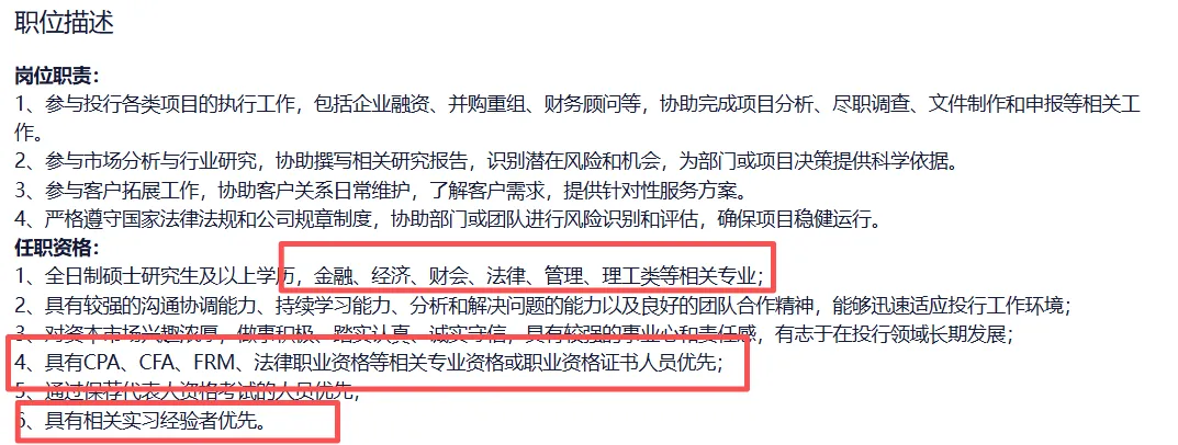 复合背景候选人更易录取,总部及子公司要求硕士及以上,分支机构本科可投,门槛比其他顶级券商宽松。