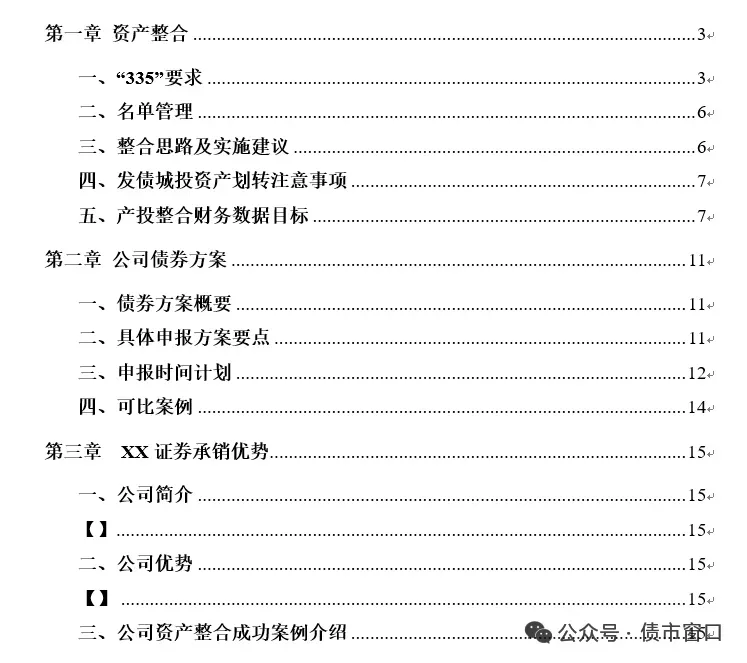2、债市窗口结合产业转型实操和产投资产整合过程中的各类事项,编制了《产投资产整合及债券融资建议书》模板。