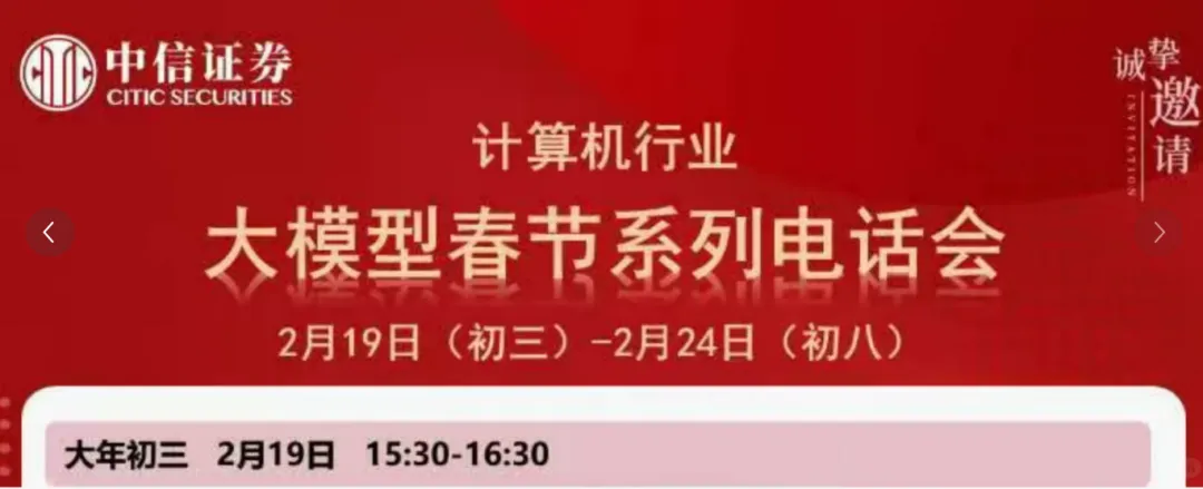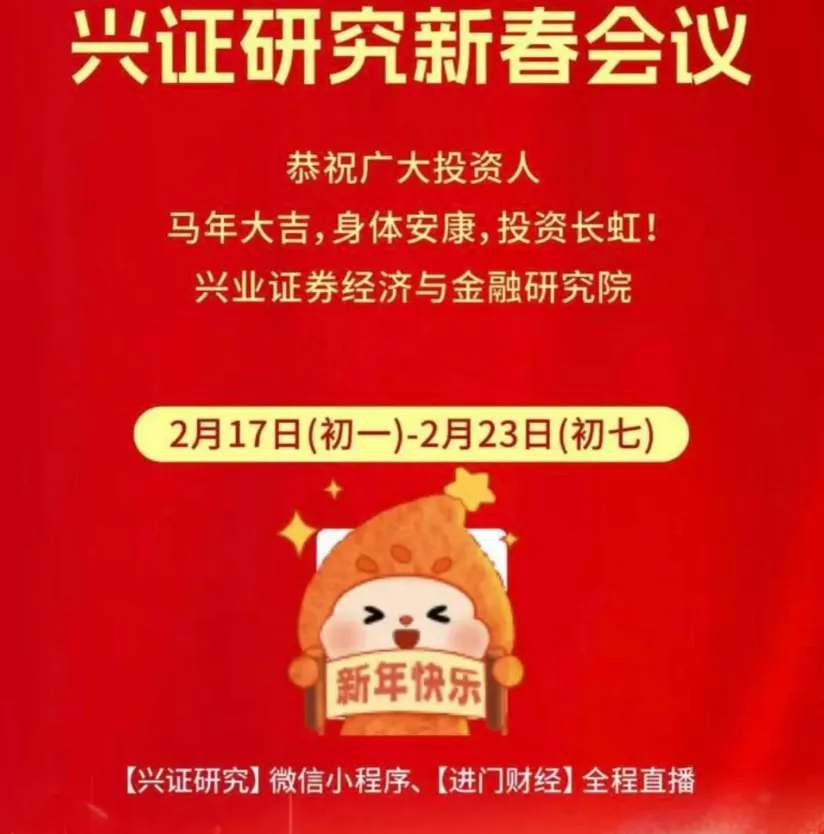 有的所甚至打出口号:“春节八天不打烊,研究相伴不停歇!2月14日-2月21日,xx证券xx团队八天连播,为您前瞻洞察核心趋势与市场主线。假期持续蓄能,开年稳握先机,欢迎报名参会!”😓😓我就纳闷了——真有什么非讲不可的东西,不能等节后再说?让分析师喘口气很难吗?