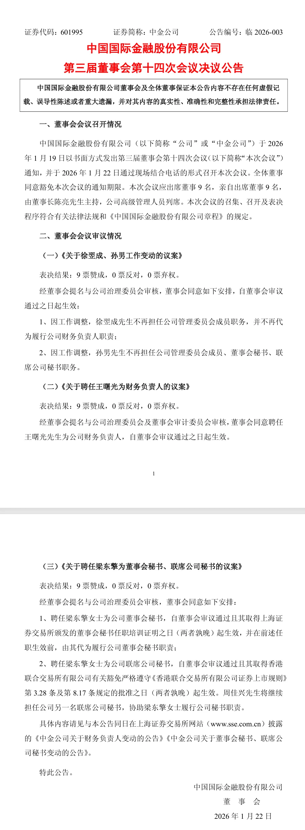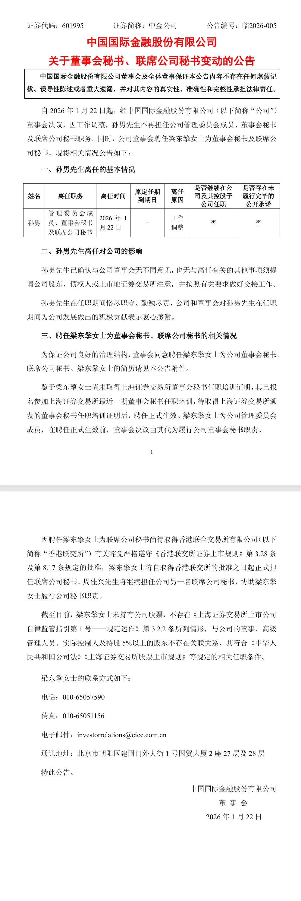 这位新董秘之前一直做财富管理业务。让她去负责跟投资者沟通、发公告,可能暗示着公司未来要更看重财富管理这块业务,想让外界多了解中金在这方面的布局。同时,这也算是给年轻人让位,推动管理层年轻化。