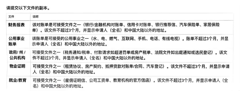 8. 中国身份用户提供境外工作生活证明,支持的材料如下: