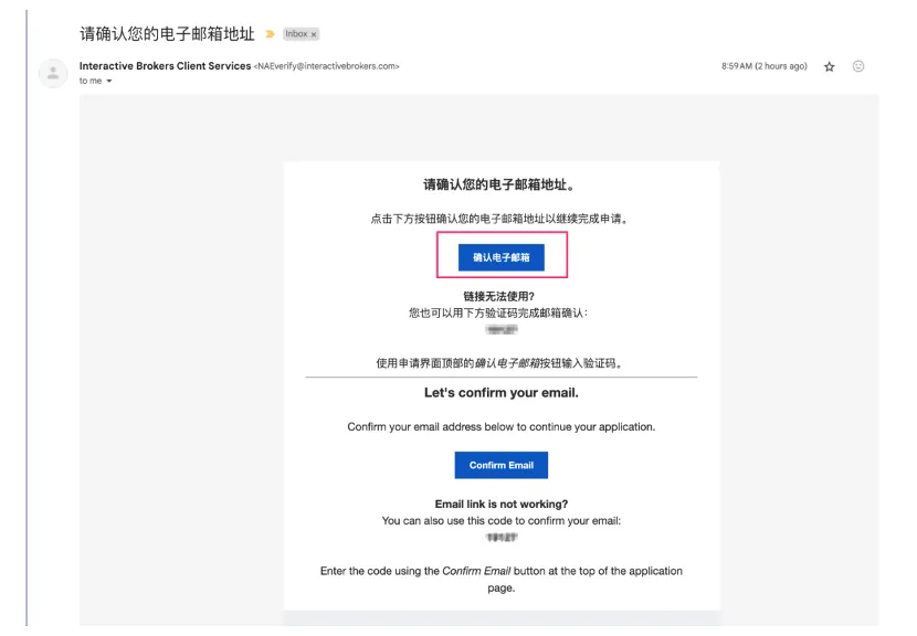 打开你的注册邮箱,里面会有盈透发送一封邮件。