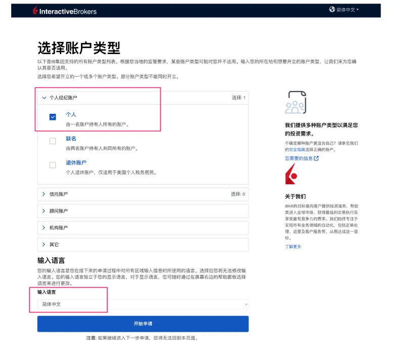 账户我们选择"个人经纪账户" -> "个人"。