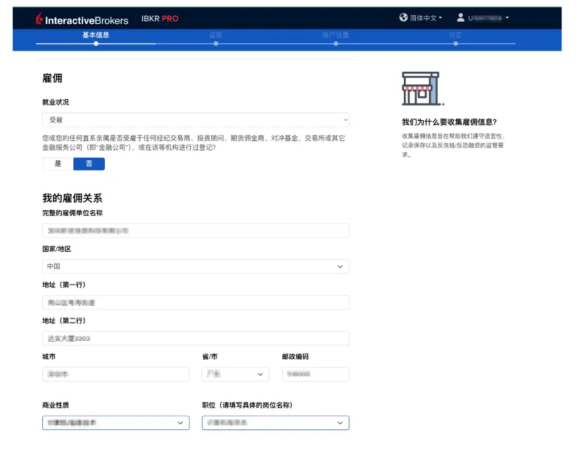 我这里就业情况选择的"受雇",所以会填写单位名称、地址、职位等信息。