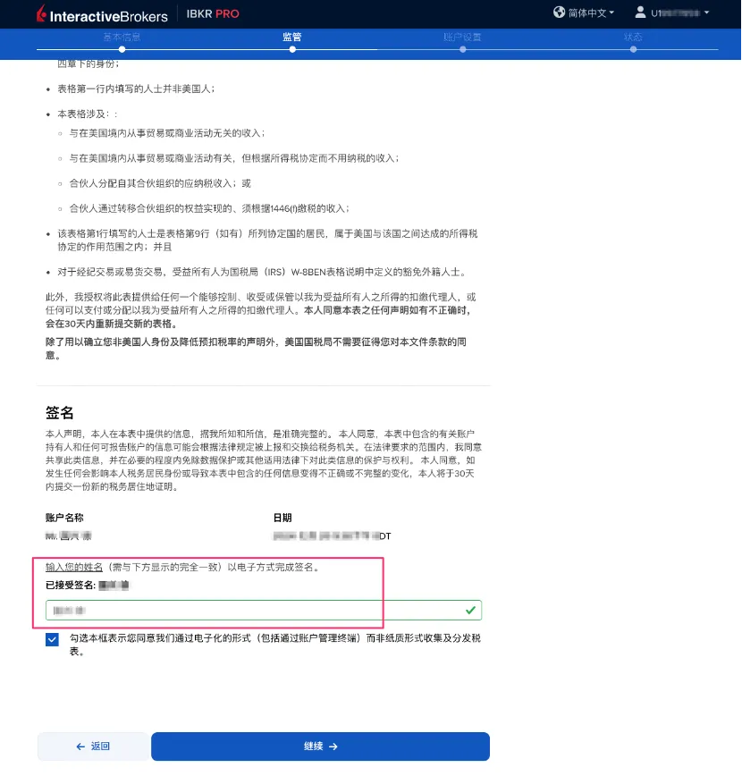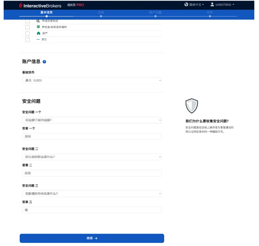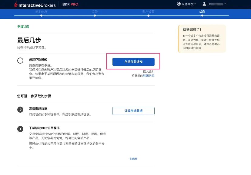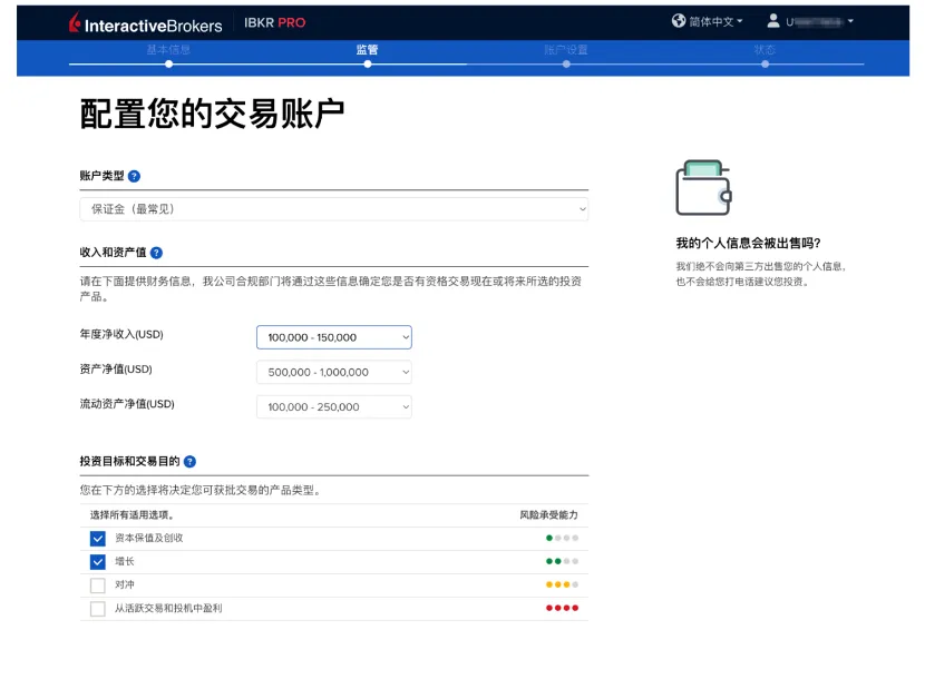 之后,盈透开始创建账户,并有如下提示。
