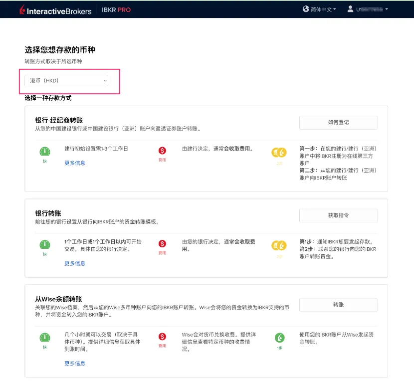 左上角默认显示币种是"美元(USD)",我用的港卡,想入港币,所以可以切换成"港币(HKD)"。