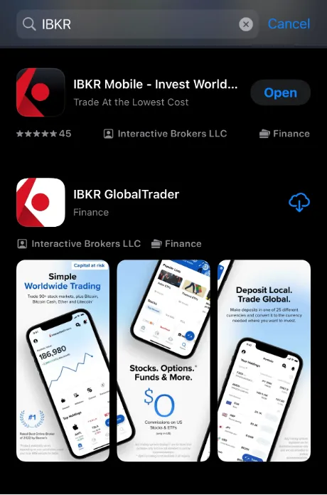 黑色的"IBKR Mobile"和白色的"IBKR GlobalTrader", 这两个都是盈透的官方App,下载哪个都可以。简单来说,IBKR Mobile功能更全一些,IBKR GlobalTrader功能更简单,更适合新手。