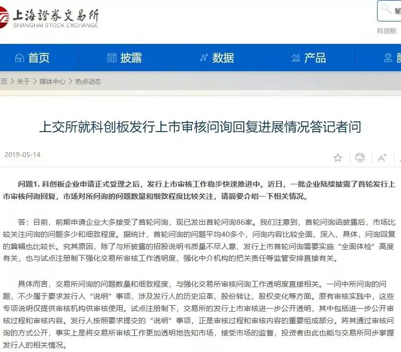 3、 截至5月14日,已有71余家企业披露了首轮问询回复。回复中存在避重就轻、答非所问的情况,有的回复刻意避短、夸大其词,有的回复篇幅冗长、拖泥带水,修改后的招股说明书,大多只做加法不做减法,有的回复不合要求,没有将补充到招股说明书的内容凸显出来。