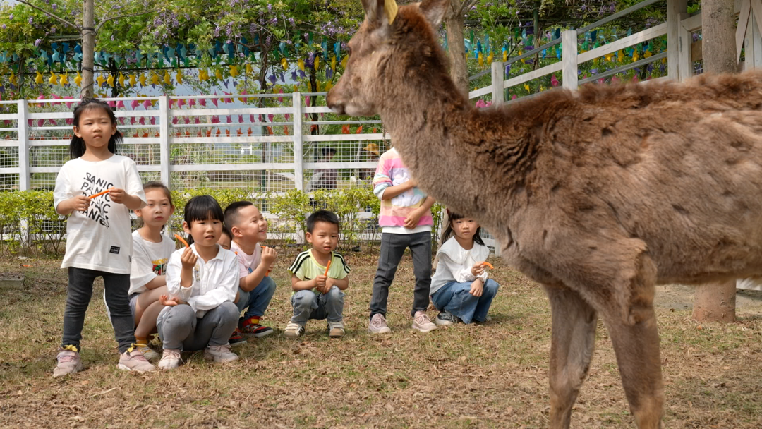 小朋友们正在给羊驼、梅花鹿取名字。