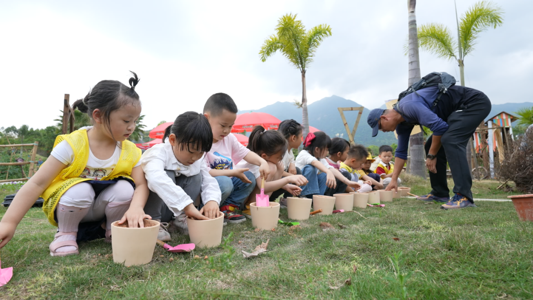 先领取种植的陶盆、铲子,再听李教练讲种植的注意事项。