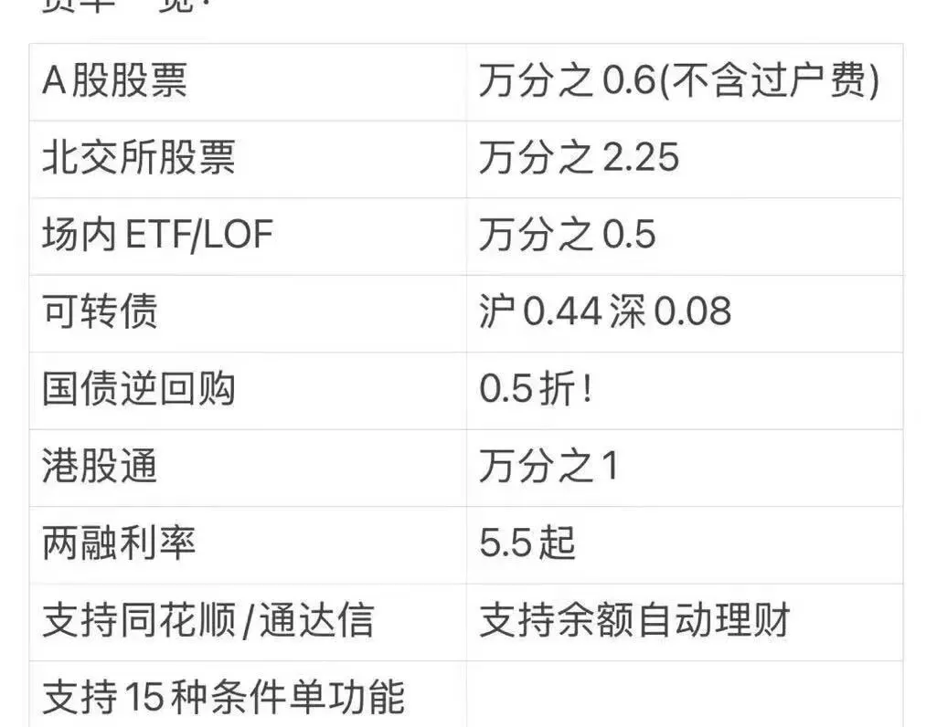 如果你资金量比较大,单笔交易动不动就5万、10万以上,那么低费率(万0.6)的价值就体现出来了。这时最低5元的限制已经不起作用,更低的费率能帮你省下更多成本。