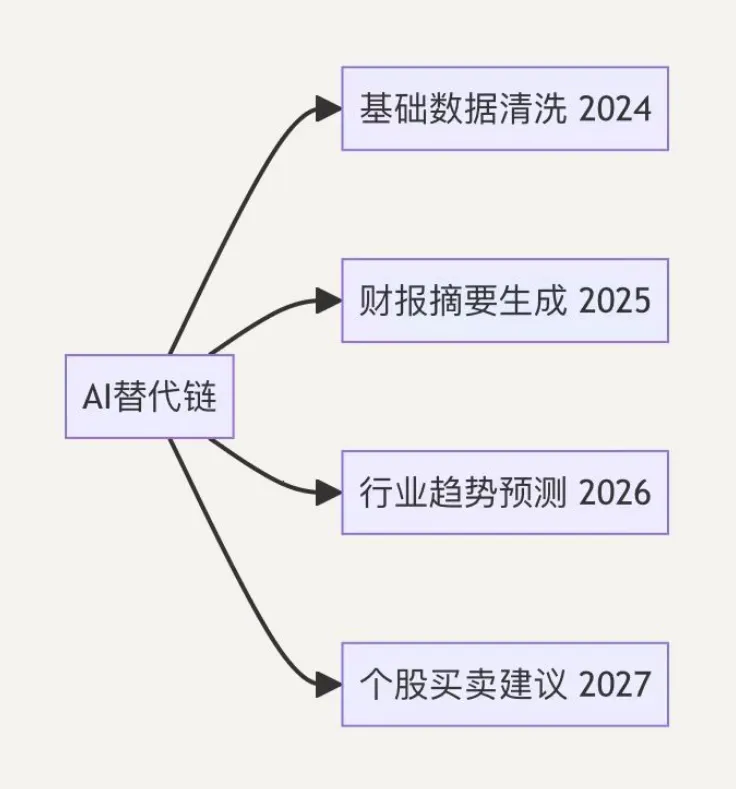 有一个案例: 某TOP10券商研究所砍掉40%初级分析师岗,AI系统3分钟输出50页深度报告,错误率低于人类分析师。