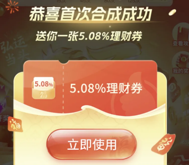 在APP的“活动广场”进入“集五福”。完成浏览任务,能合成一张5.08% 的券(2万14天,赚约38元)。在活动页邀请1位好友,还能再得最高3张6.08% 的券(1万14天/张,3张约赚140元)。单号这部分就能有近180元收益。在APP“理财”页面上方,进入“新春抽福卡”活动,可以直接领取一张8% 的理财券(1.5万额度,14天,预计收益约46元)。这是短期高收益的选择。如果你是全新用户,切记一定要通过专属渠道(微信:Yangshuheaimama)开户,可以叠加新客福利。单纯自己注册可能会错过额外奖励。理财是一场长跑,但这些看得见的、确定性的收益,是很好的“第一桶金”和信心来源。活动细则以APP实时页面为准,理财券均有额度和期限,领取后请及时使用。希望这个小分享,能成为你财富之路一个轻松而扎实的开始。