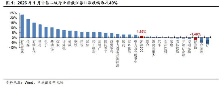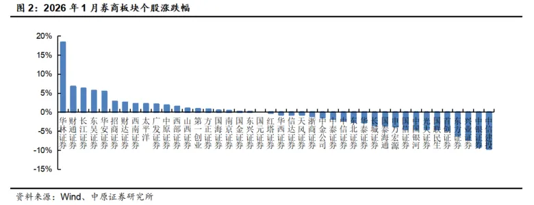 1.2. 1月券商板块分化加剧,头部券商显著压制券商指数月度表现