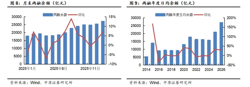 截至1月底,2026年两融日均余额为26874亿,较2025年两融日均余额20793亿元+29.2%。