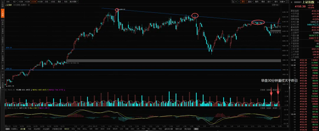 原因很简单,当下市场头顶压力位,且无法确认能否持续补量的情况下,机构和量化是不可能也不敢在开盘就直接往上拉权重。