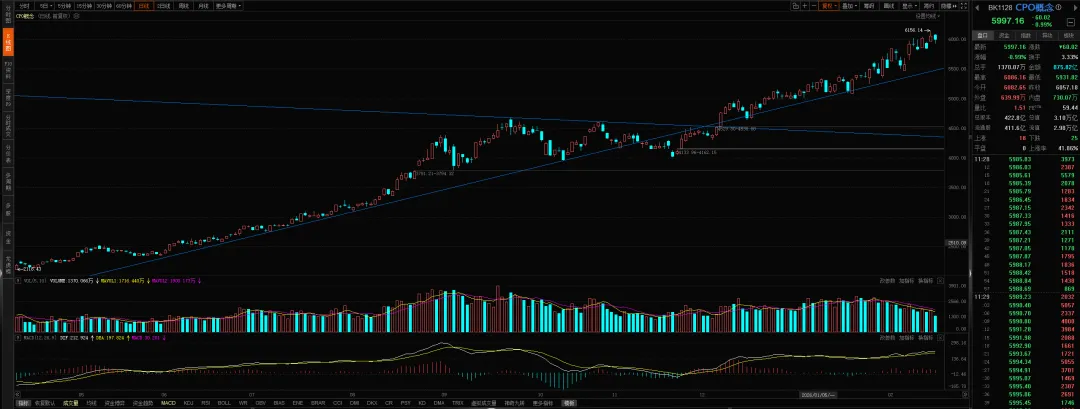 大家看CPO的这个趋势走的,漂不漂亮?这种反复的走出进二退一、中枢不断抬升的走法,大家有没有感到很熟悉。