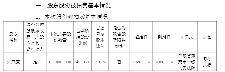 根据公告,朱凤廉目前持有公司股份1.26亿股,占公司总股本的14.07%。本次被拍卖的6300万股占其所持股份的49.96%。公司控股股东新世纪公司、实际控制人杨志茂及其一致行动人合计持有公司2.95亿股,占公司总股本的32.88%。