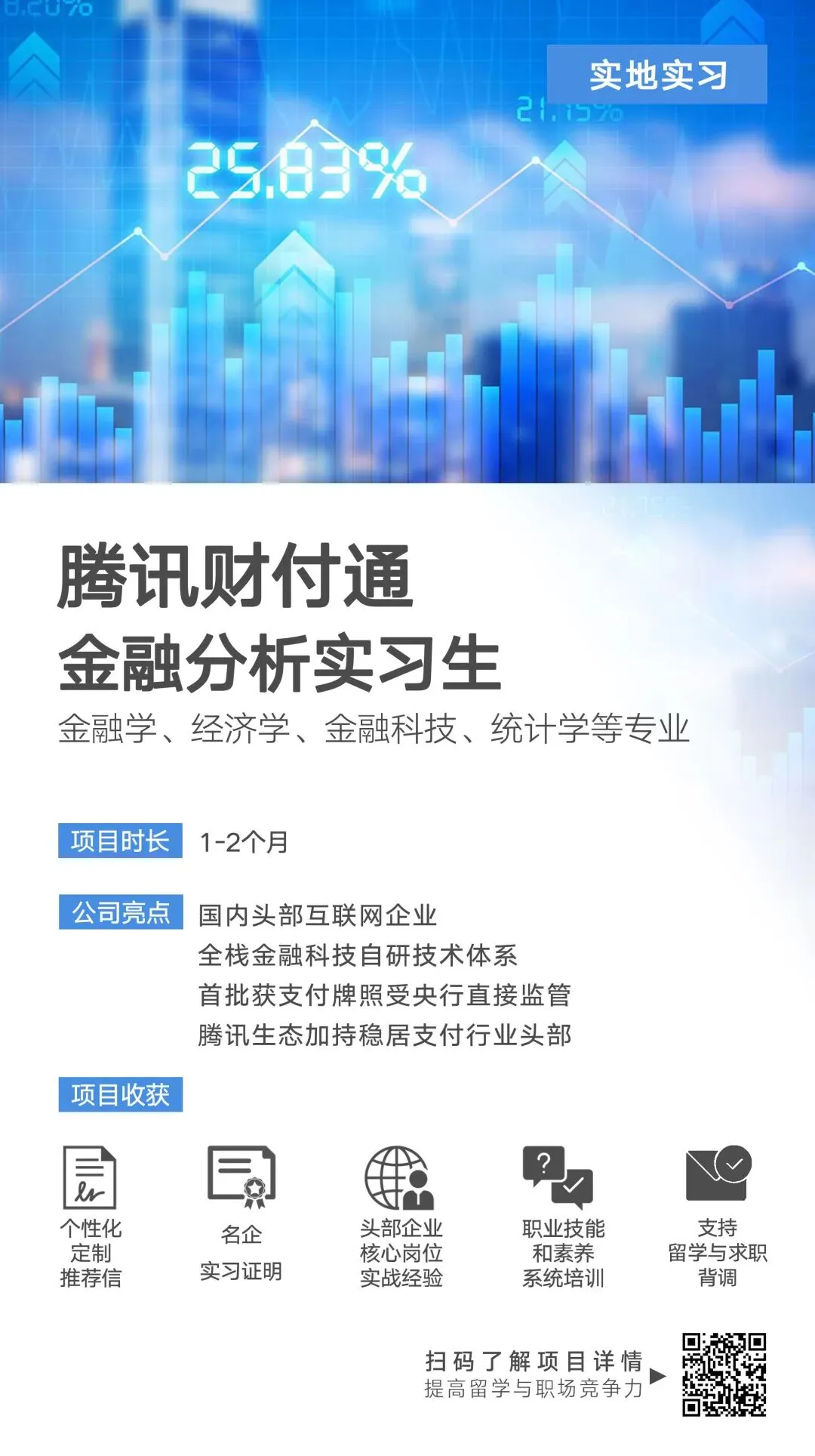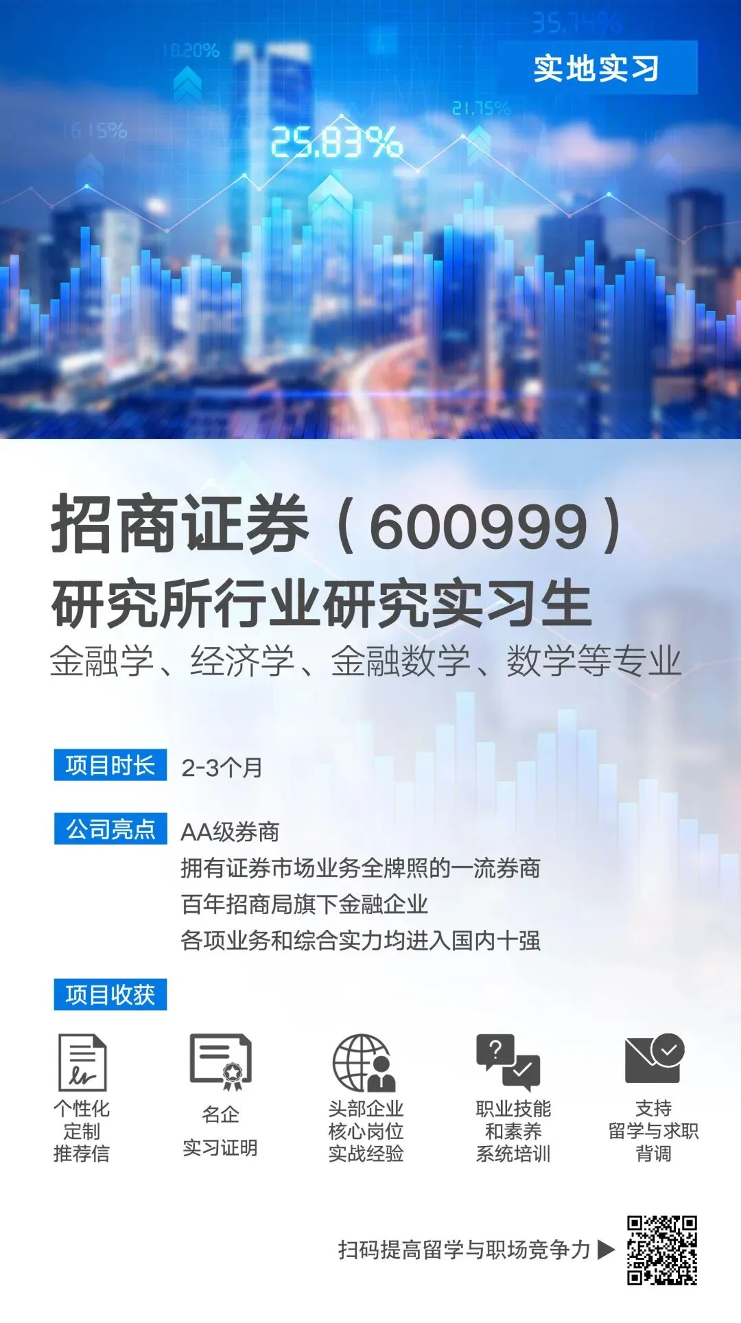 实习 | 想冲券商金融行业和互联网大厂金融吗?快来看看吧~关注公众号,回复关键词领取福利回复【简历】每日限量免费评估简历回复【规划/人工】获取导师1v1求职规划辅导公众号关注 @博睿国际教育查看更多城市更多实习机会🎯【行研岗位合集】💓#实地实习#实习#招商证券#国联民生证券#腾讯财付通#金融📩提供:#推荐信+#实习证明+#留学&#求职背调📍#实地,早了解、早准备~👊直击金融核心岗能力需求🧑🏼💻专业导师1V1带练📈沉浸式复刻券商业务全流程📝技能+方向双buff拉满这波机会🎓顺利完成可收获实习证明与留学推荐信,为你的履历增添亮色!招商证券研究所行业研究实习生(实地实习)工作内容:1、对所负责的行业进行行业动态、市场趋势、政策影响等方面的研究,并对相关上市公司进行业务模式、财务状况、经营情况等全方面的分析,准确把握行业变化趋势,为投资决策提供依据;2、通过各种渠道收集、整理、分析行业及公司的数据和信息,及时跟踪行业、公司各方面的最新信息,搭建完善的行业数据库,为投资决策提供数据支持;3、对所关注的行业中的二级公司进行持续跟踪研究,并建立相应的财务模型进行估值分析,为投资决策提供公司层面的分析支持;4、根据研究结果撰写各类研究报告,包括日报、周报、点评报告等,以帮助投资团队更好地了解行业动态和公司情况,同时为商务PPT的制作提供内容支持;5、领导交代的其他日常工作。备注:工作内容可能会根据导师的当前工作情况和项目进展进行灵活调整。国联民生证券研究所行业研究实习生(实地实习)工作内容:1、协助上级进行行业及上市公司进行动态研究,进行资料、信息收集等辅助性工作;2、对所负责的细分领域进行独立深入研究,撰写研究报告;3、参与寻找行业内潜在投资、并购机会,提出相应的投资建议;4、实地项目有机会参与投行发行路演工作,对主要金融机构进行上市公司价值宣讲和路演;5、领导交代的其他日常工作。备注:工作内容可能会根据导师的当前工作情况和项目进展进行灵活调整。申银万国期货研究所行业研究实习生(实地实习)工作内容:1、学习使用Wind、卓创资讯等数据终端,负责原油、PTA、甲醇、乙二醇等能化品的历史价格、库存、开工率等相关数据的提取与整理;2、协助进行能化品产业链分析,收集月度产量、进口量及下游开工率等数据,参与计算供需缺口,支持分析师完成日常研究报告;3、学习运用布林带、MACD、RSI等技术指标分析期货合约短期趋势,跟踪能化品持仓变化与资金动向,协助进行市场情绪研判;4、尝试逐步独立完成能化品价格分析报告,包括数据整理、图表制作、趋势分析与交易建议的初步撰写;5、配合完成资料整理、数据核对、报告格式调整等基础支持工作,积累行业研究与期货分析实务经验;6、完成领导交代的其他日常工作。备注:工作内容可能会根据导师的当前工作情况和项目进展进行灵活调整。腾讯财付通金融分析实习生(实地实习)工作内容:1、协助整理金融业务数据,完成数据清洗与基础统计;2、参与业务指标监控,辅助分析数据波动原因,输出简单分析结论;3、金融产品或业务模块的分析报告撰写,整理分析所需资料与图表;4、协助维护金融数据台账,对接相关团队同步数据需求与反馈;5、领导交代的其他日常工作。备注:工作内容可能会根据导师的当前工作情况和项目进展进行灵活调整。招聘岗位实习岗位:行研、金融分析等实习生实习地点:北京/上海/成都/广州/深圳/南京/长沙/杭州实习时长:1-3个月实习收获:专业导师一对一简历修改 | 多行业多专业海量职场导师在线课程,供各阶段学生随时学习 | 企业导师与学生每周沟通+日常答疑,安排实战任务,提供指导,进行点评等,确保学生有所收获 | 高端企业导师出局个性化推荐信,确保被调无忧