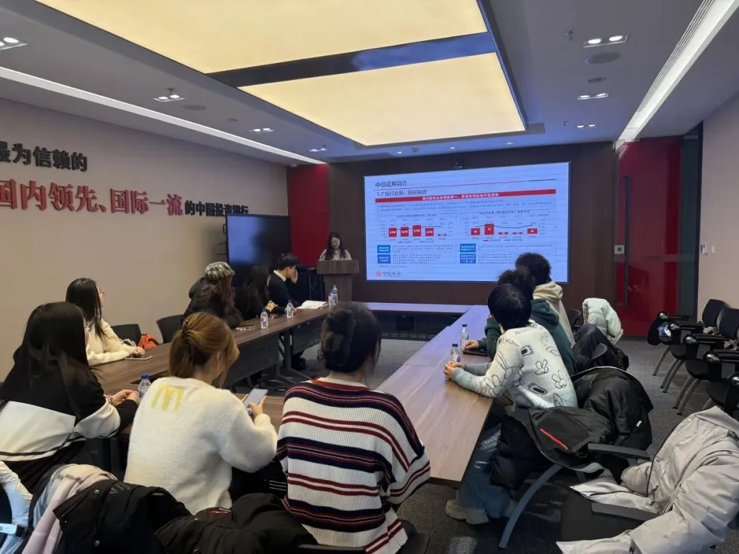 围绕“求职双向选择”这一核心问题,总经理陈笙总经理从平台资源、发展空间等维度解读了中信证券的核心价值,运营总监总经理庞钰静则补充了薪资福利与校招流程细节分享结束后,实践团与企业嘉宾共同合影留念,定格下这场满载真知灼见的交流时刻。