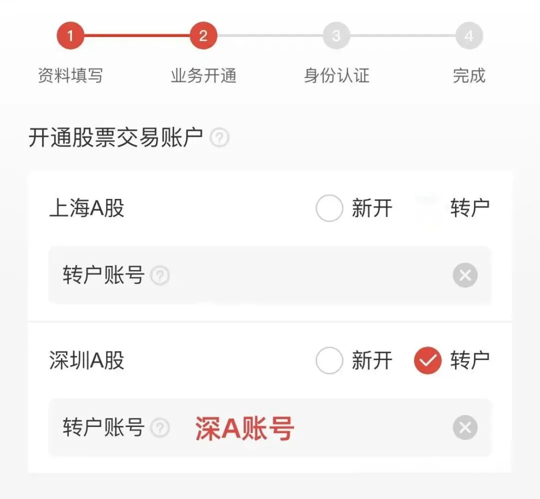若开满3个沪A股东账号后,想在第4家券商开户,开户过程中可直接加挂原有深A账号到新券商,这样就可无限制开户(如下图):