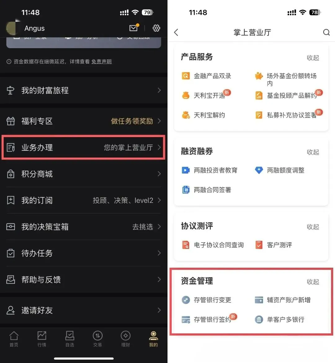 操作路径:证券app→我的→业务办理→资金管理→存管银行变更。
